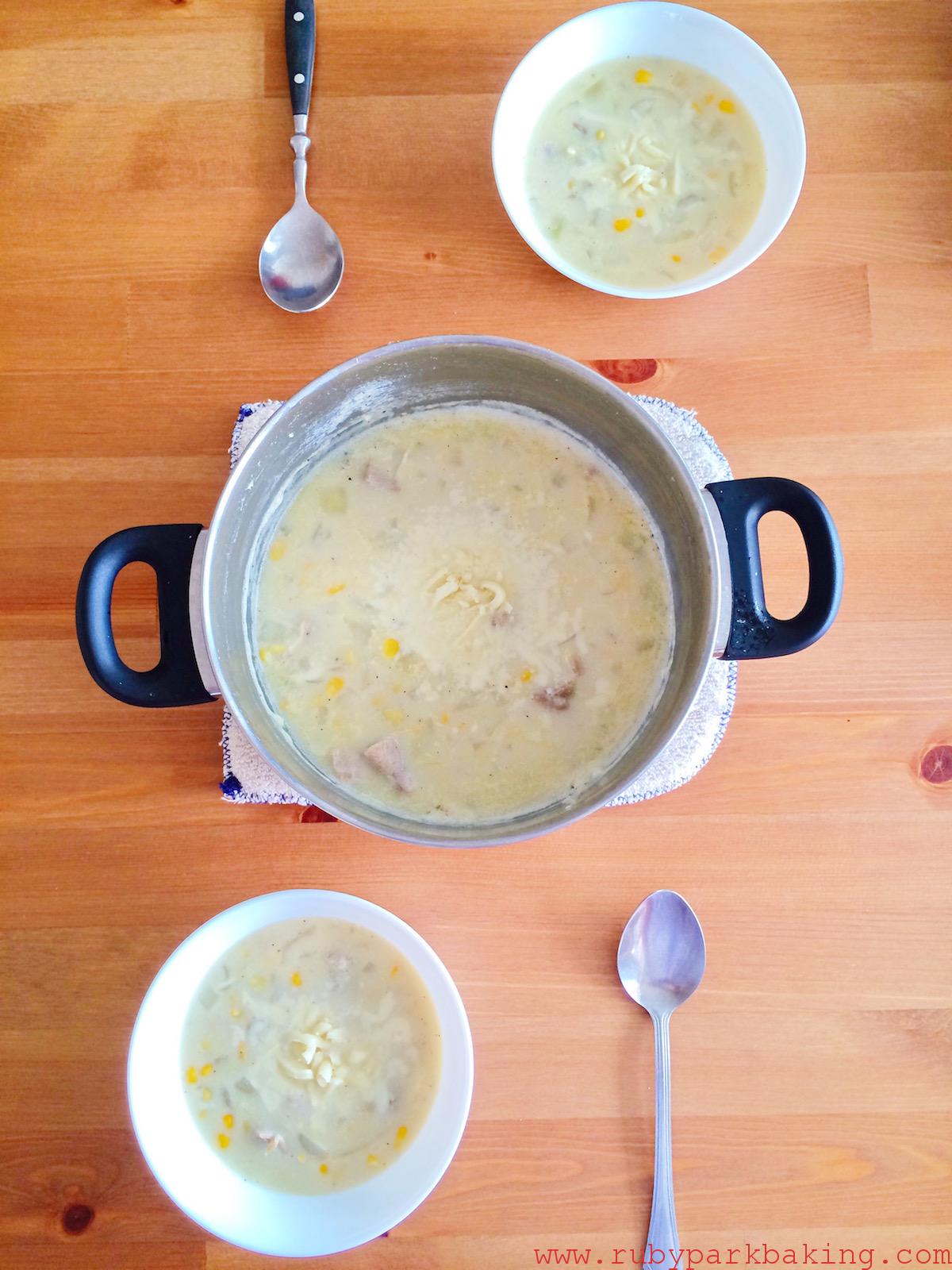今回はチキンとコーンのクリームチャウダーを作ってみました!